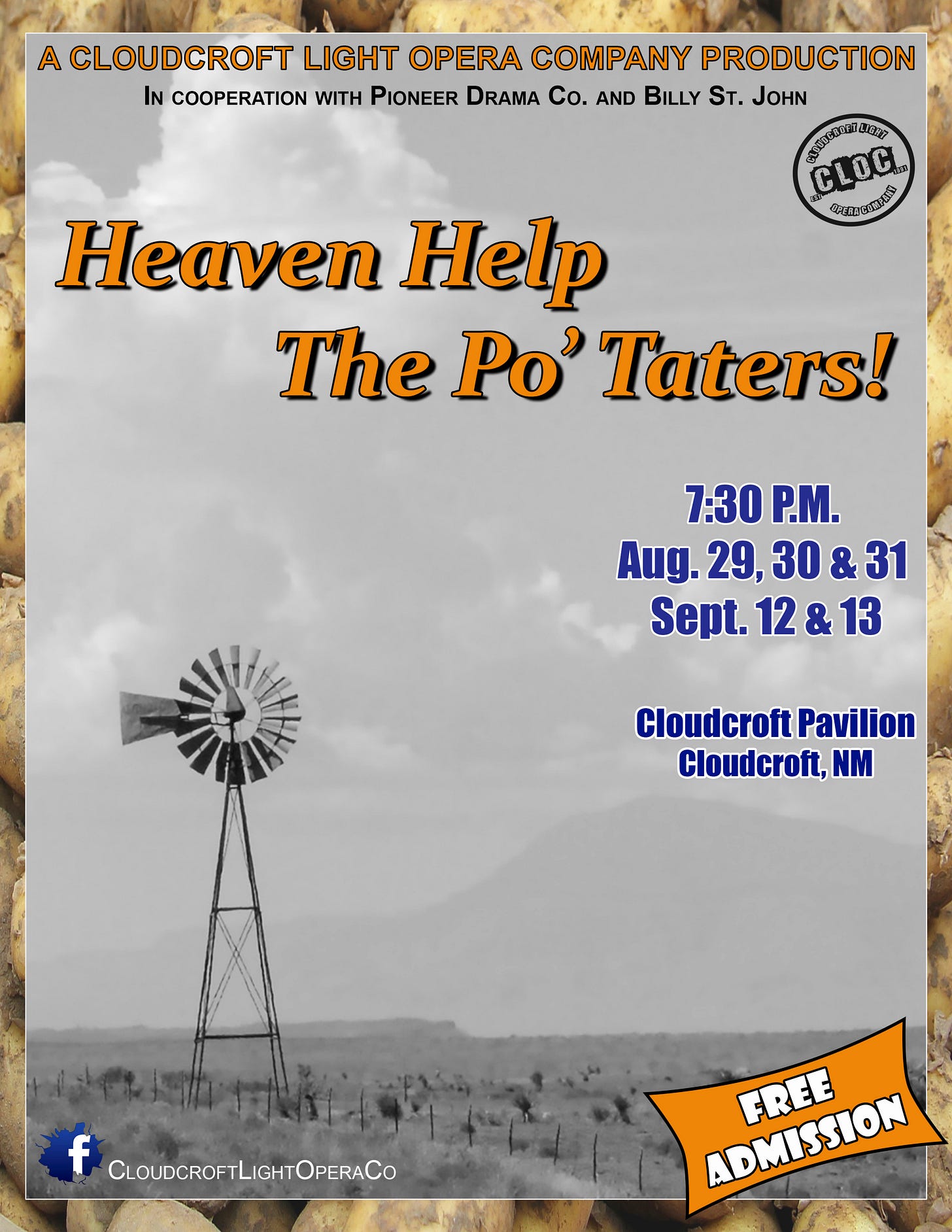 Grab a seat, grab your popcorn—it’s the end of the Cloudcroft Light Opera Company Melodrama season in Cloudcroft. Heaven Help the Po’Taters has a full cast and comedic slant.