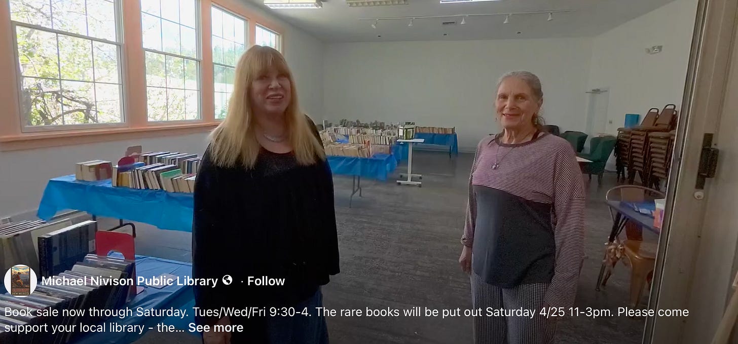 A book sale is ongoing now through this Saturday, April 25, from 11 a.m. to 3 p.m. Bags of books are $5; rare titles are $5 each. Funds raised go to the Friends of the Library, who fund library events.