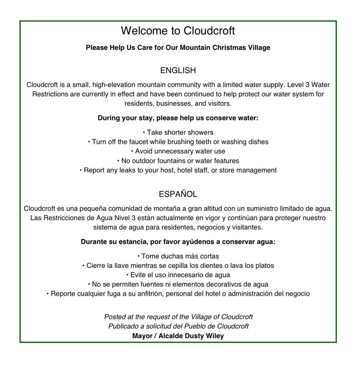 On January 12th, the Village of Cloudcroft Facebook page sent out reminders that the village is still on Level 3 water restrictions, along with a message to residents and visitors alike: