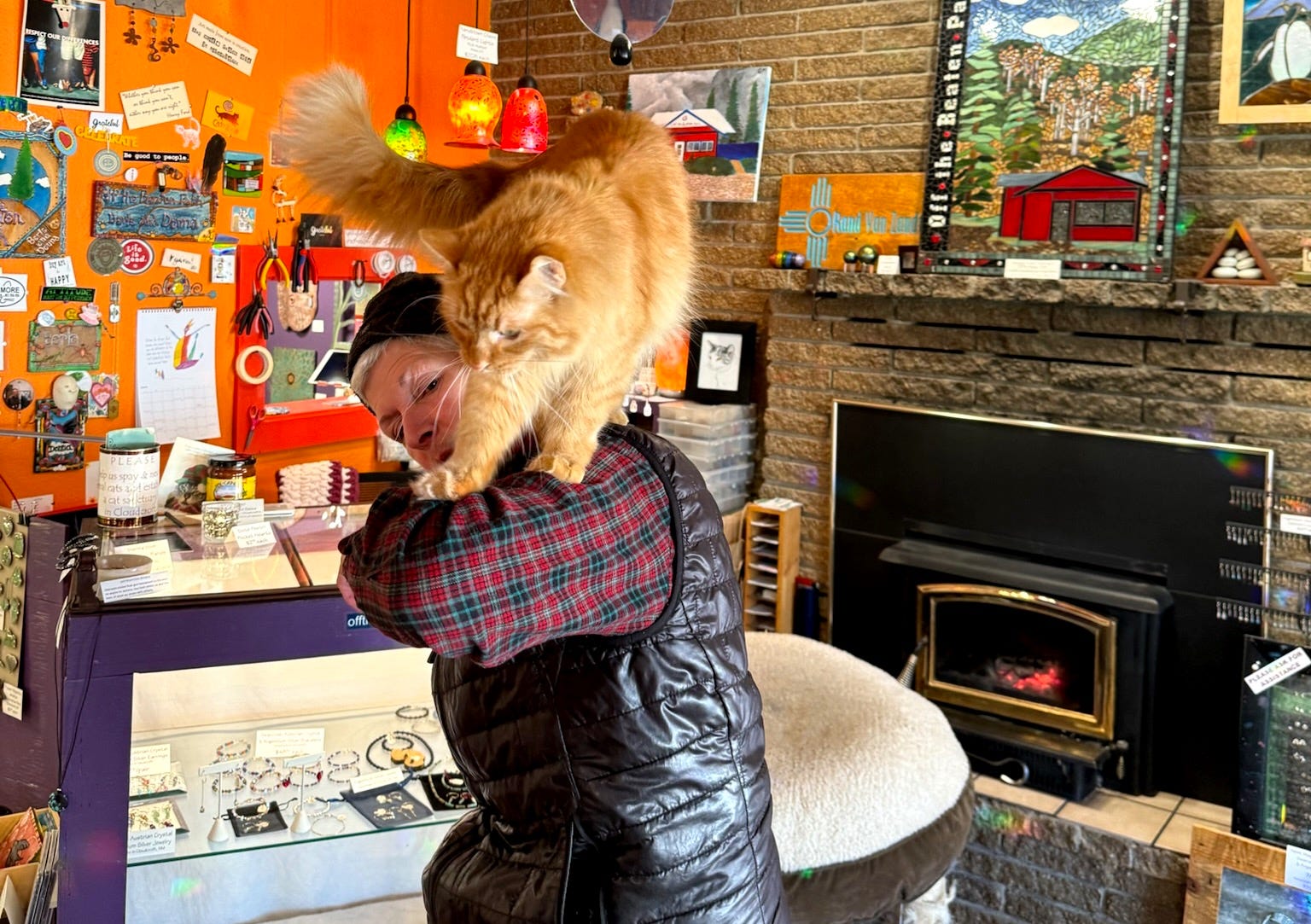 “When somebody comes in and just looks at you, you know they have a cat,” Berle says.
