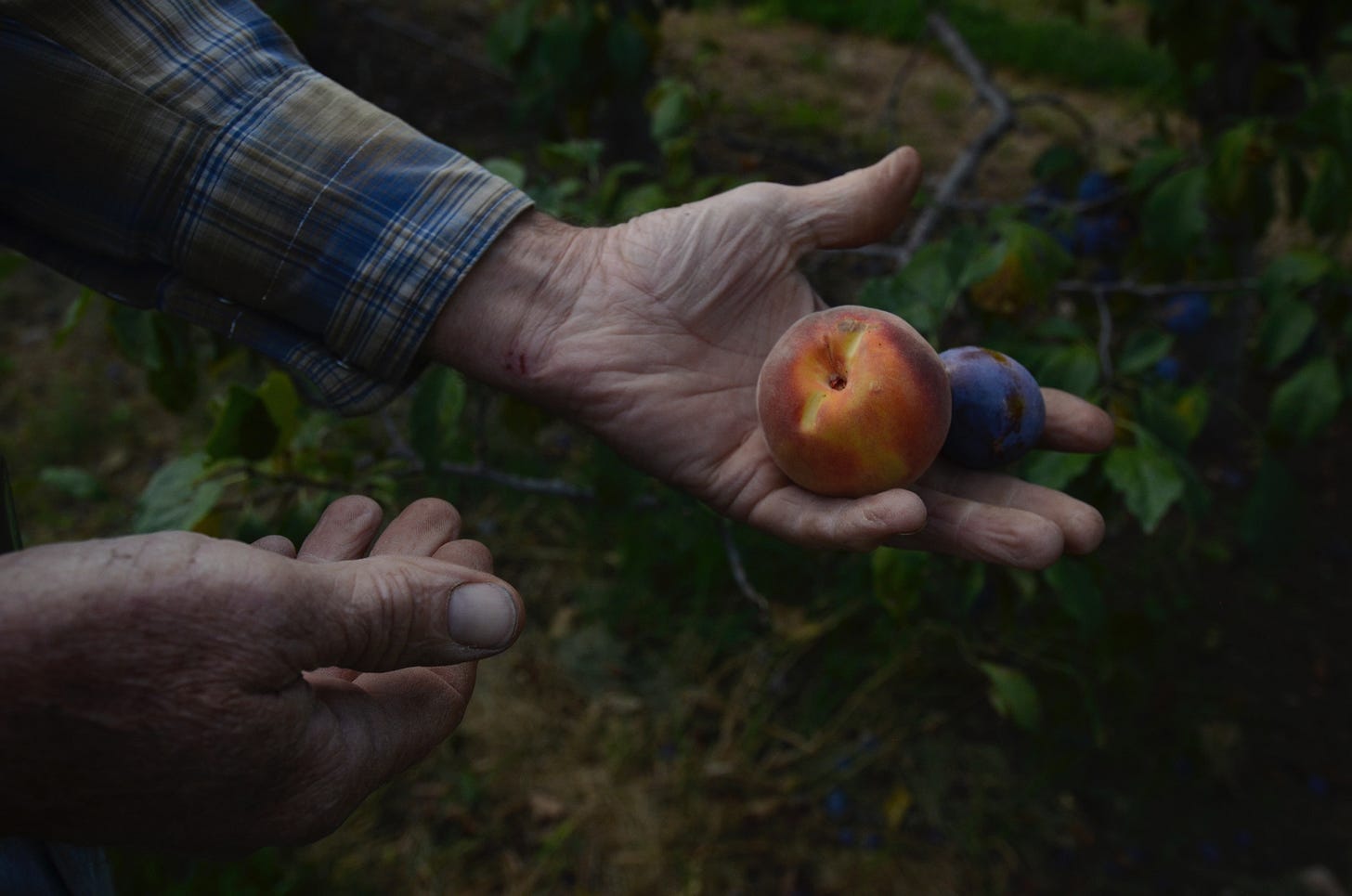 James meanders through his fruit trees and plucks peaches and plums from the branches. He bites into them to test their taste. “It would be nice to keep a few farms up here. There are days when I doubt it will happen, but it’s a good thought,” he says.