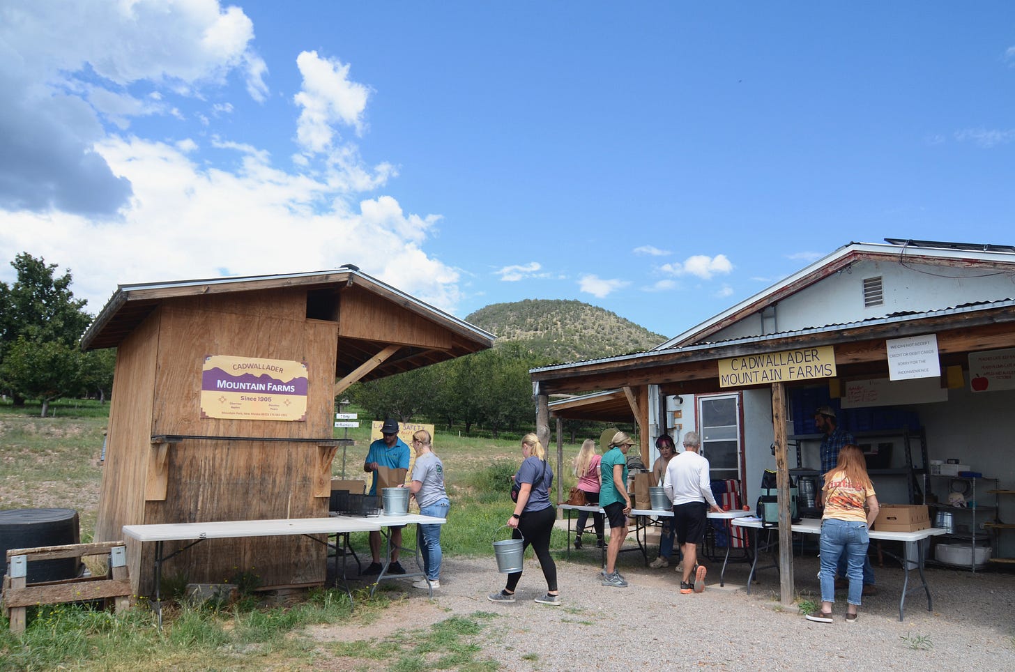 James’ cousin Mark Cadwallader has a stake in the family land next to him, where he runs Mountain Park Events, a wedding and event venue surrounded by fruit trees. James also manages a popular roadside fruit stand on Highway 82 where passers-by pick up bushels of apples, jars of honey, vegetables, and cider on their way up or down the mountain.