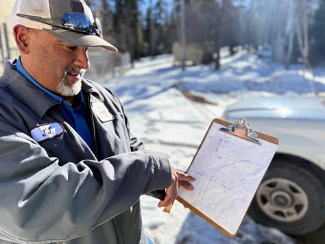 Last week, crews isolated the Woodlands and Sugar Pine section by effectively cutting that neighborhood out of the distribution system, narrowing the search zone. Tuesday’s plan: read meters to identify homes with old meters that might harbor leaks.