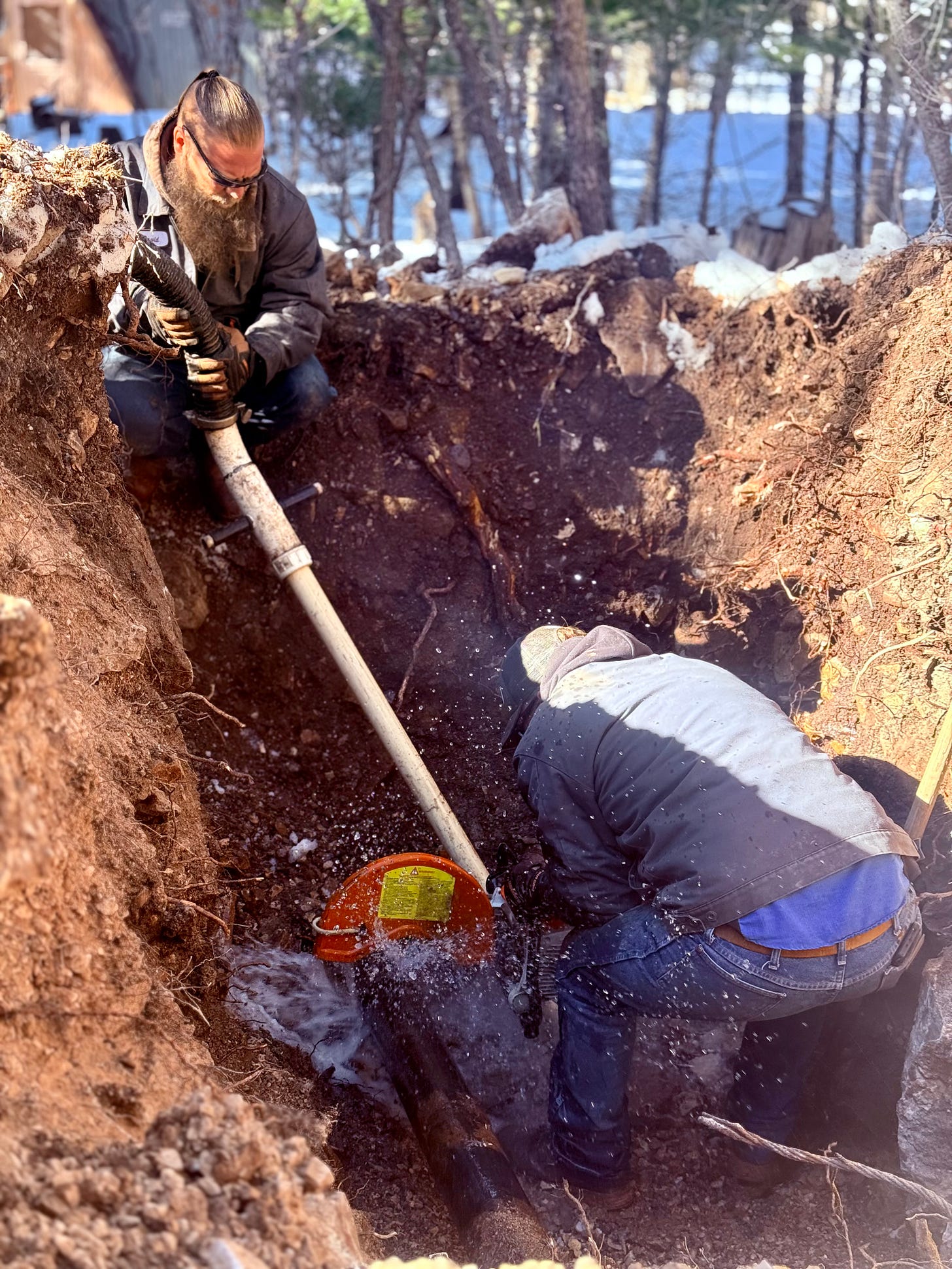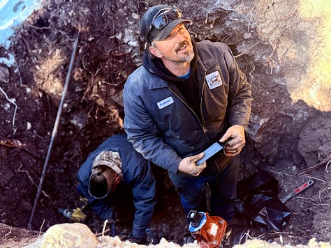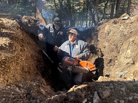 Frozen ground has turned routine excavation into an endurance test for the small Public Works team. Employees work knee-deep in water, in freezing conditions, to repair leaks and replace valves.